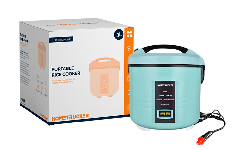 La arrocera portátil modelo ARPOR de la marca HomTrucker es la solución perfecta para los conductores de camiones y usuarios de autocaravanas que desean una comida casera en el camino.